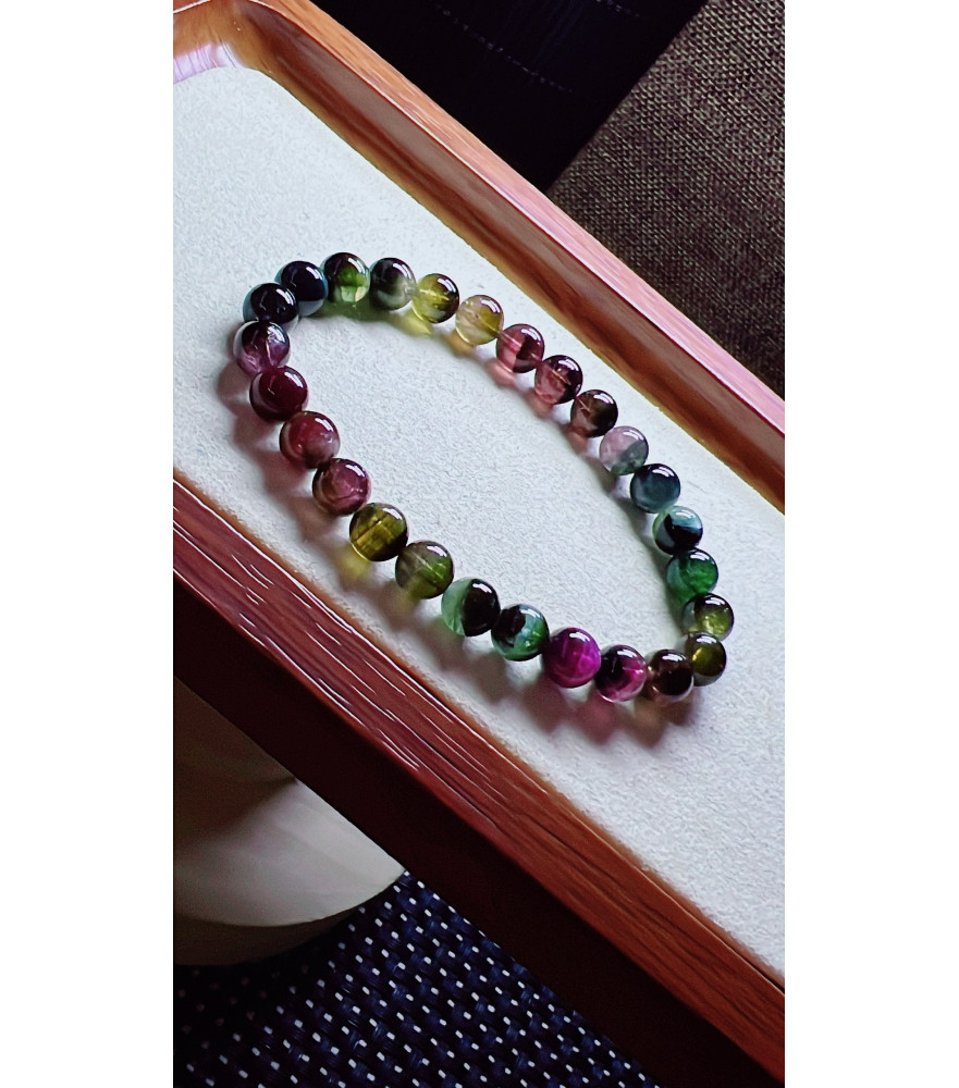 Tags: 313F11 exquisite old mineral watermelon tourmaline bracelet, size 7mm, weight 14.8g