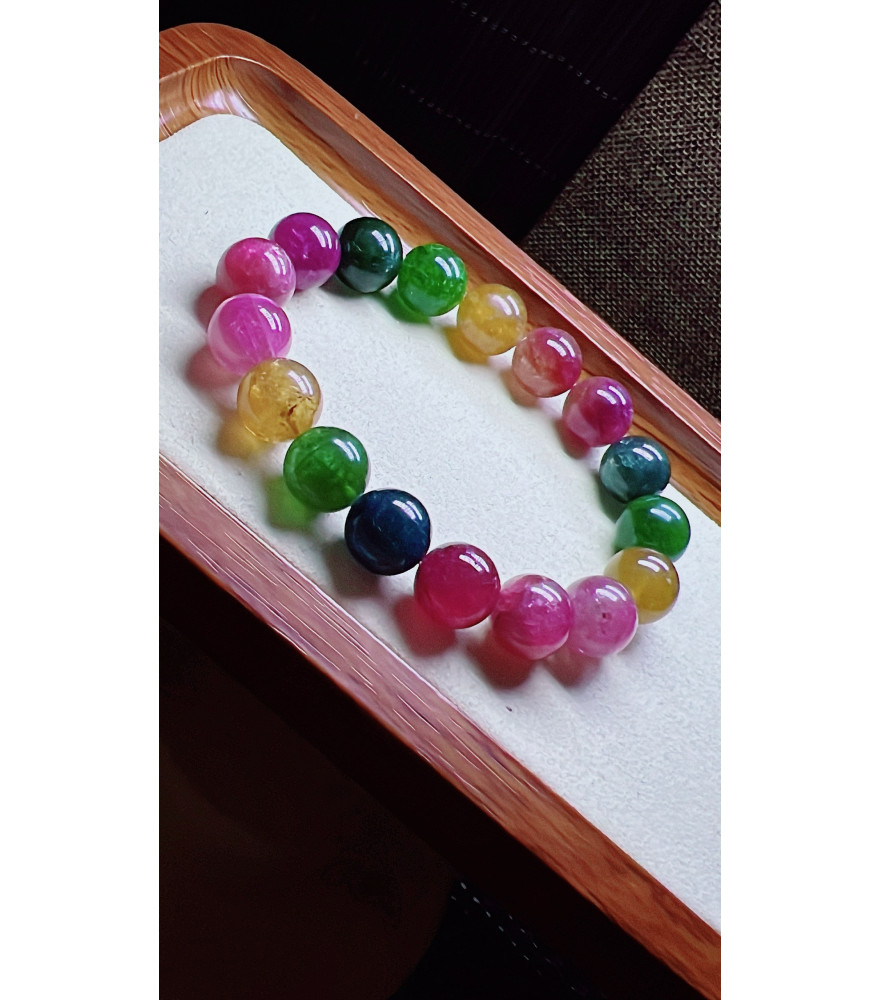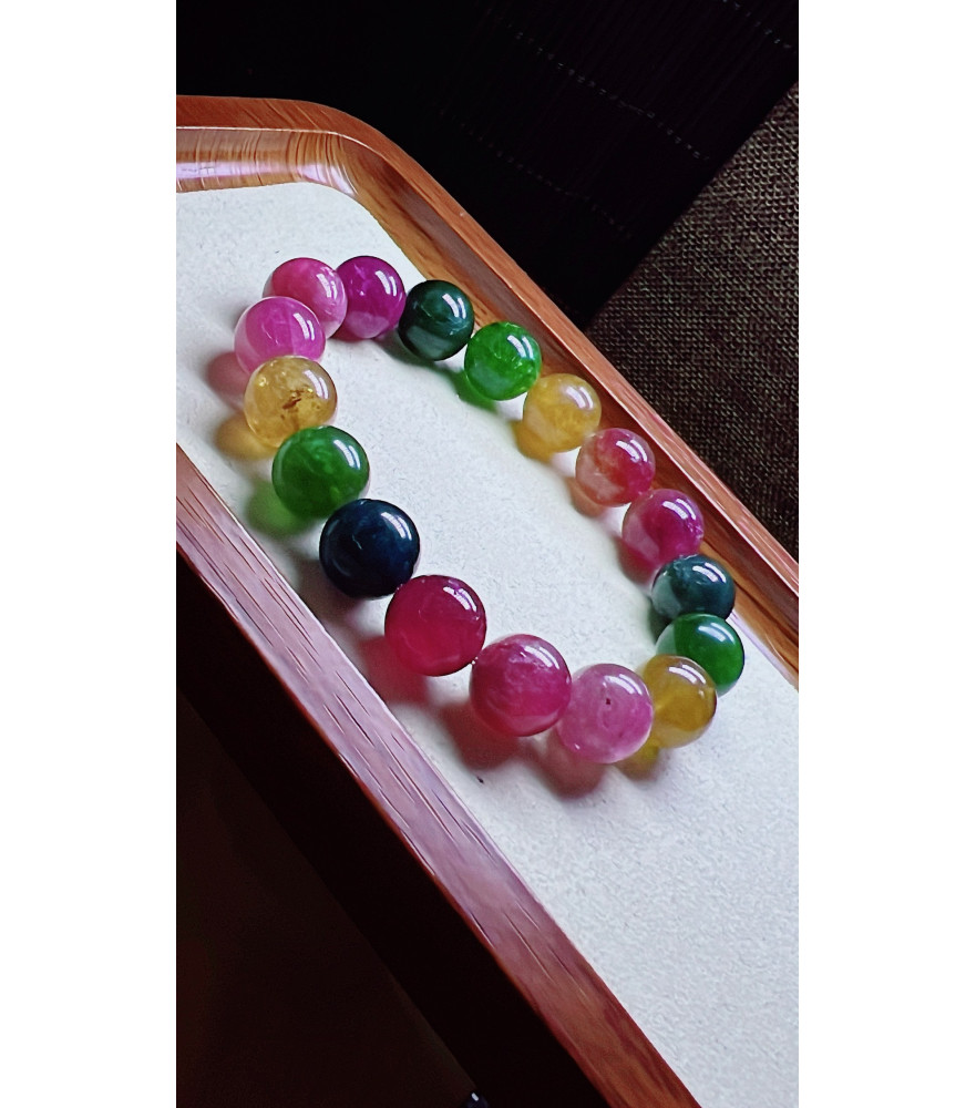 Tags: 310F11 exquisite rainbow tourmaline bracelet, size about 12mm, weight 49.3 grams, crystal