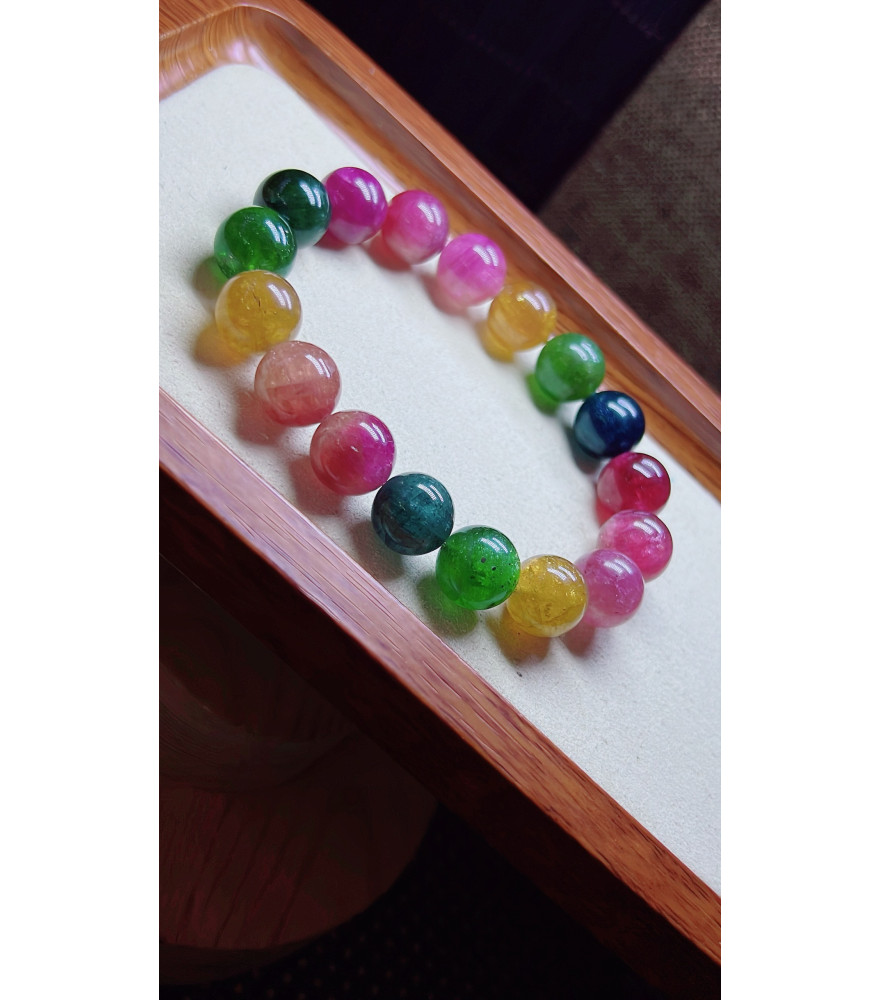 310F11 exquisite rainbow tourmaline bracelet, size about 12mm, weight 49.3 grams, crystal
