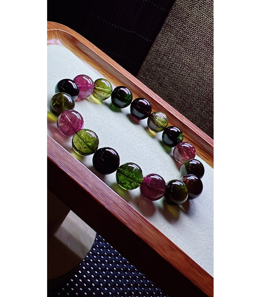 310F8 exquisite black sugar tourmaline bracelet, size about 12mm, weight 49.2g, crystal transparent, fresh and smooth color, natural color matching, suitable for women to wear in various occasions