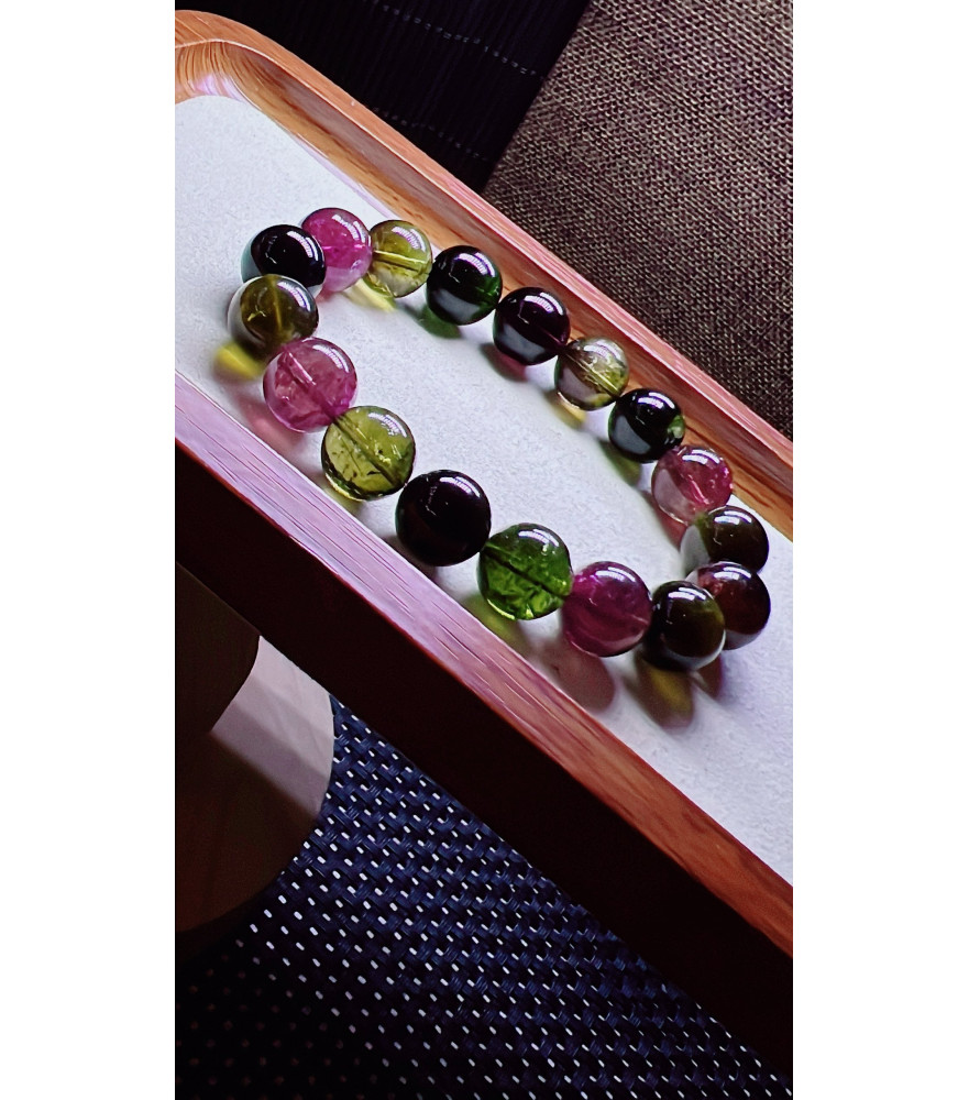 Tags: 310F8 exquisite black sugar tourmaline bracelet, size about 12mm, weight 49.2g, crystal