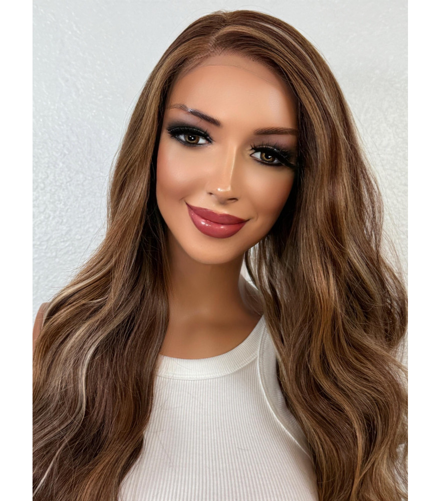 Mocha Brown Spiced Vanilla Blonde Wig, Balayage Loose Curls Premium HD Invisible Lace Front Wig, 13x6 Free Part 26 Wig