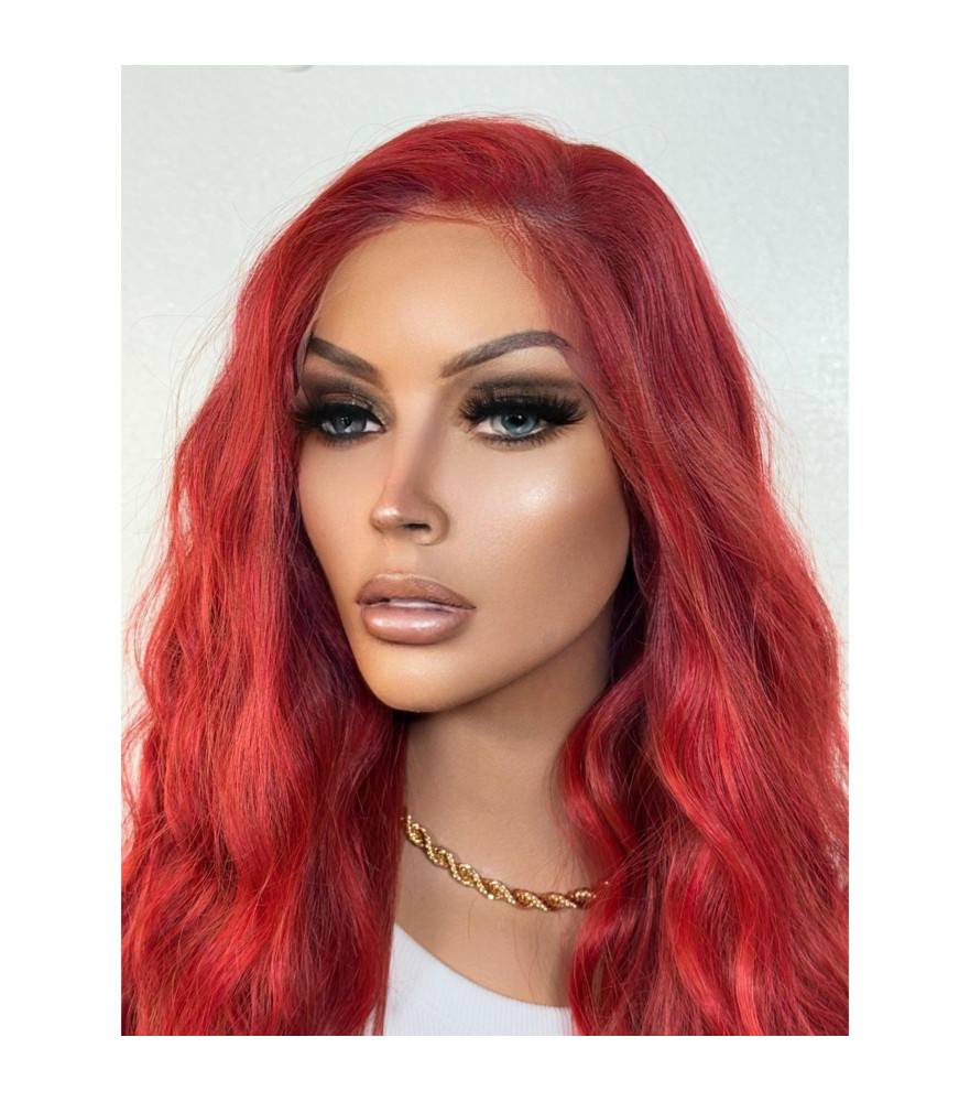 Tags: Red Bold Intense Candy Apple Red Lace Front Wig, 13x6 Free Part Red Balayage Lace Wig