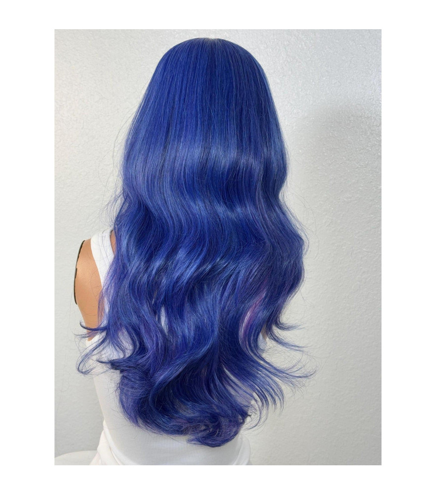 Royal Purple Blue Wig, Lavender PeekABoo Balayage Wig, Face Framing Layers Lace Front 13x6 Free Part Multi-Directional Wig