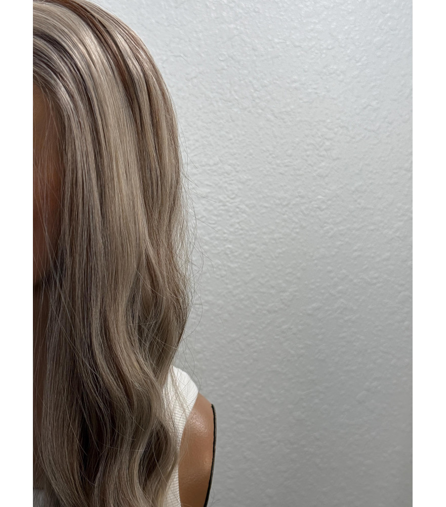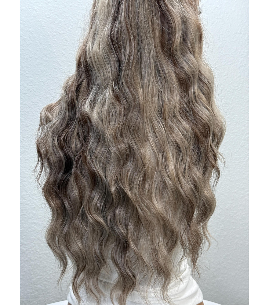 Iced Winter Blonde Ash Brown Chunky Mixed Human Hair Blend Lace Frontal Wig, HD Invisible