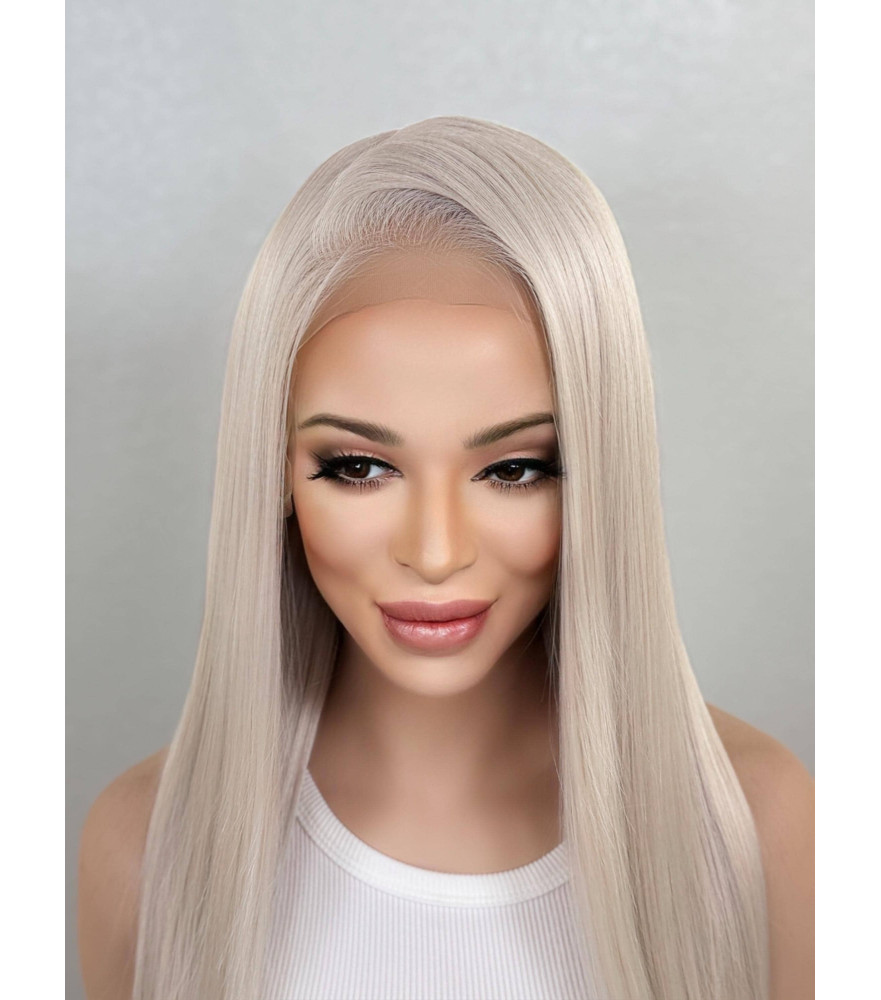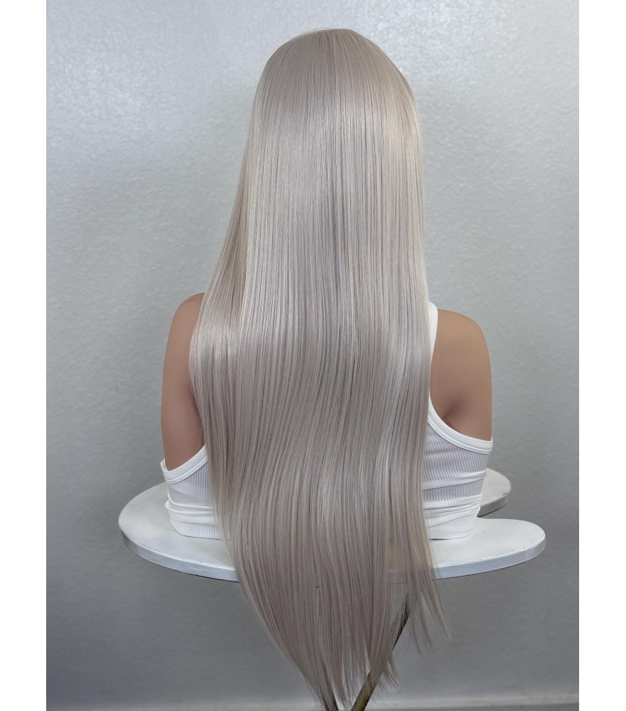 Winter White Blonde Human Hair Blend HD 13x6 Wide Lace Top Lace Front Wig 30 Long Straight Moveable Part Wig