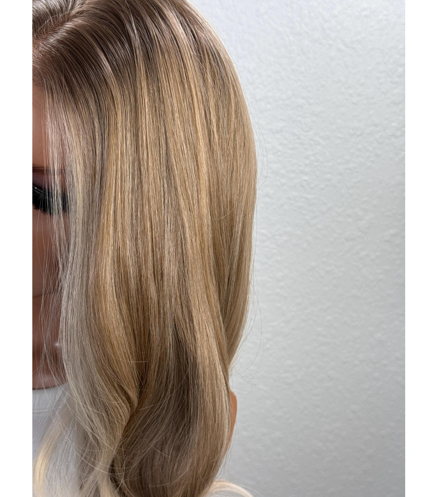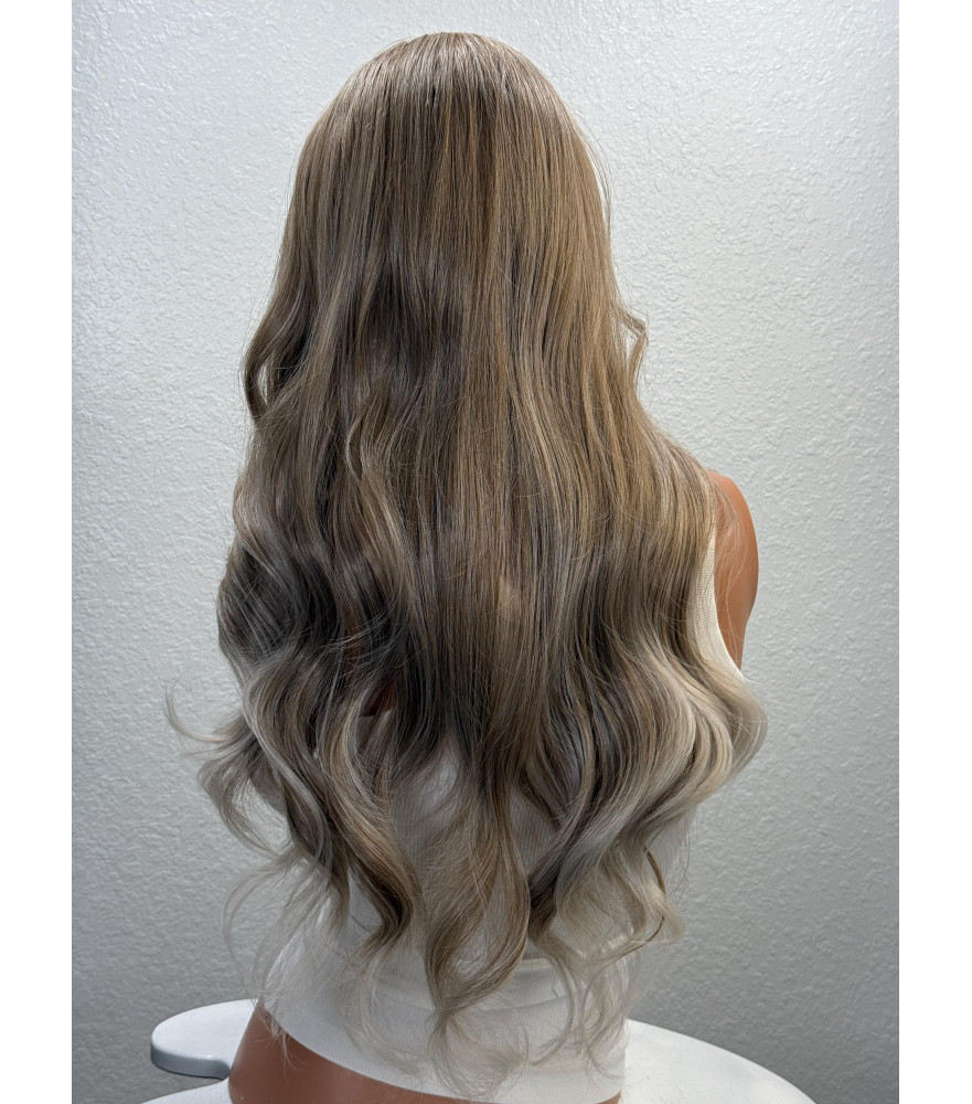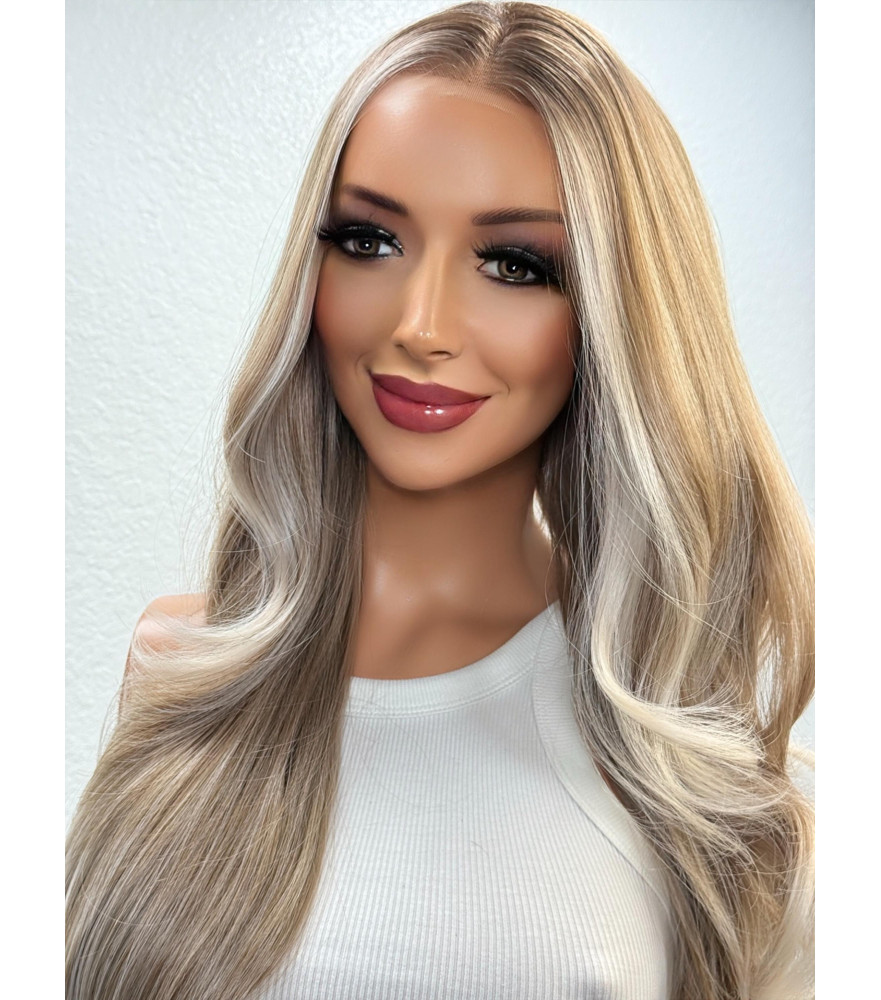 Platinum Blonde Wig, Money Piece Sand Blonde Hair Wig, Balayage Wavy Premium 13x4 Free Part HD Invisible Lace Front Wig