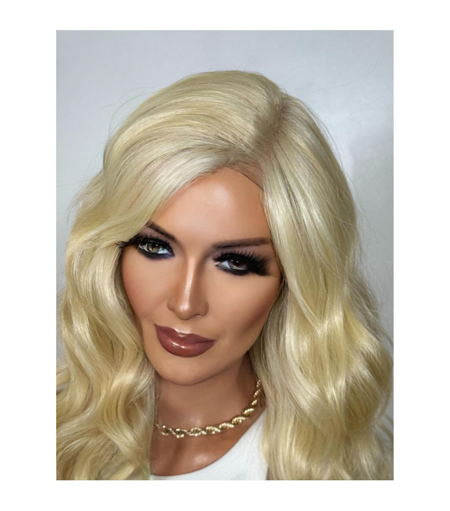 Lightest Swedish Blonde Wig, Anna N. Sexy Pin Up Style Curls Wig, 18 inch Deep Side Front Lace Wig, Heat Safe Wig