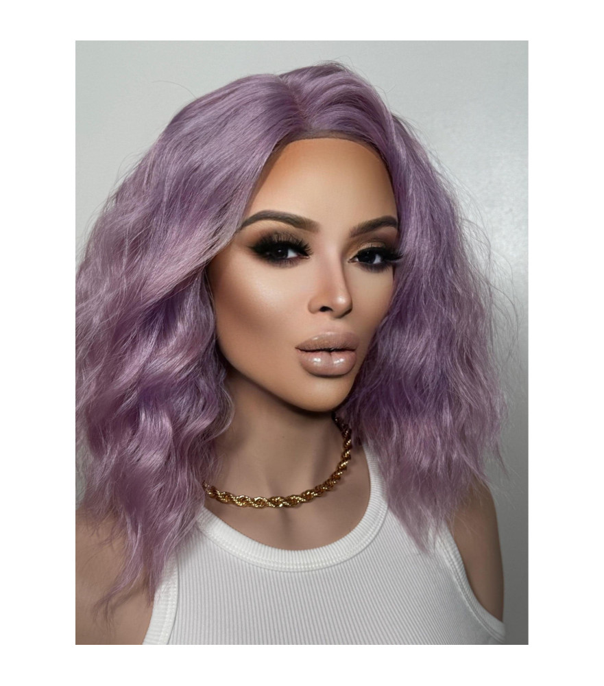 Tags: Lilac Light Purple Wig, Short Middle Part Wavy Heat Safe Bob Lace Front Wig
