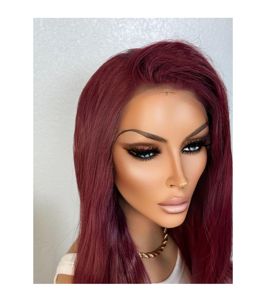Tags: Red Deep Cherry Plum Burgundy Lace Wig, Long Straight Vibrant Red Soft Loose Curls Wig