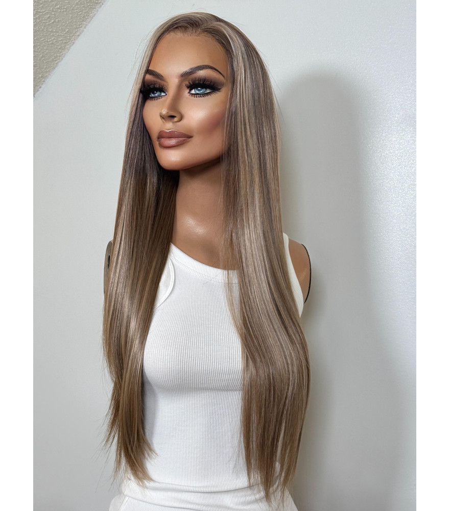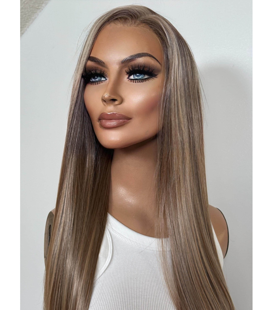 Warm Sandy Blonde Brown Wig, HD Invisible Lace Top Wig, Blonde Long Straight Frontal Wig, Blond Balayage Wig 13x3 Lace Front Wig