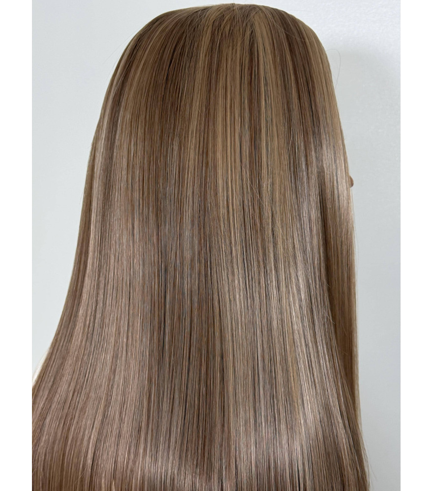 Tags: Warm Sandy Blonde Brown Human Hair Blend Wig, HD Invisible Lace Top Wig, Blonde Long